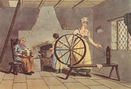 “Houses are likewise scattered an infinite Number of Cottages or small Dwellings, in which dwell the Workmen which are employed, the Women and Children of whom, are always busy Carding, Spinning and so that no hands being unemployed, all can gain their Bread, even from the youngest to the ancient; hardly anything above four Years old, but its hands are sufficient to itself."